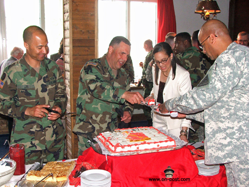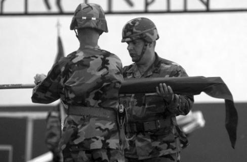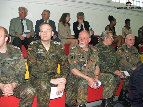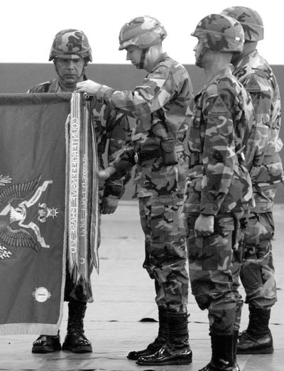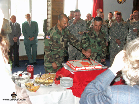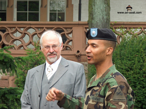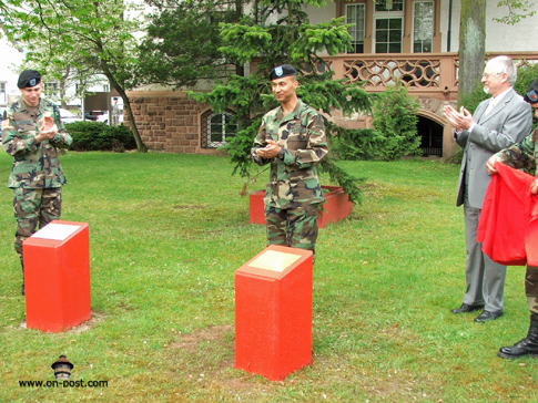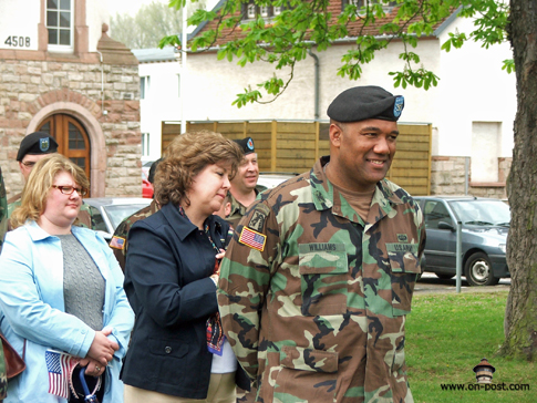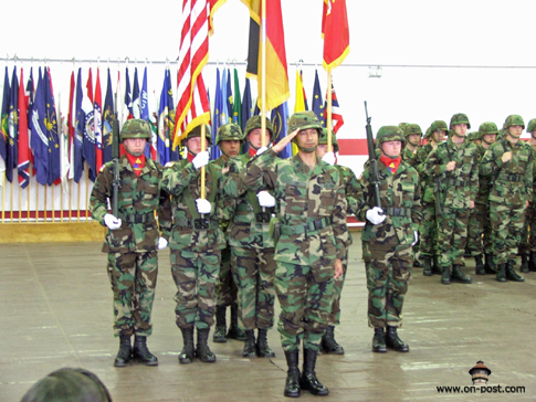 ![]() Babenhausen-based artillery unit inactivates By Kevin Dougherty, Stars and Stripes European edition, Wednesday, April 26, 2006 Michael Abrams / S&S BABENHAUSEN, Germany — The guns of Babenhausen were packed away for good Tuesday, at least ceremoniously. Though the unit won’t inactivate until mid-July, the 1st Armored Division bid adieu to the 1st Battalion, 27th Field Artillery Regiment at a morning ceremony held indoors due to bad weather. Several hundred people attended the event, from young American schoolchildren to local German officials. While the unit’s inactivation represents just one move in a theaterwide effort to downsize and reposition the U.S. Army, the change means something else to the people of Babenhausen. “We are sad the American soldiers are going and that no new Americans are coming anymore,” Reinhard Rupprecht, the city’s Bürgermeister, or mayor, said after the ceremony. “We are losing friends.” For more than 60 years, the people of Babenhausen co-existed with the U.S. military, first as an occupied people then as partners. That partnership saw them through reconstruction, the Cold War, the war in Vietnam and the recent campaigns in Afghanistan and Iraq. It also brought in additional revenues for the city and its residents. Rupprecht estimates that Americans today annually spend well over a half-million dollars in the town of 17,000 people. Babenhausen Kaserne, which is more than 100 years old, will likely be reconfigured for housing and light industrial use, Rupprecht said. The Army has yet to announce when it will turn over the facility to the Germans, though U.S. military officials have said the elementary school on post would close for good in June. In addition to the 1-27, two batteries of the 5th Battalion, 7th Air Defense Artillery Battalion and the 71st Ordnance Battalion are due to depart. Some personnel will remain for a time, but Babenhausen isn’t one of the “enduring communities” the military talks about. Tuesday’s ceremony drew assorted dignitaries, from Rupprecht to Army Maj. Gen. Fred “Doug” Robinson Jr., the 1st Armored Division commander. Two combat streamers were awarded to the unit before its colors were ceremoniously retired. During the ceremony, Robinson lauded the 1-27, noting the support it lent the 101st Airborne Division during the 2003 invasion of Iraq. The battalion also took on added duties after the government collapsed. “Keep your lanyards taut and your powder dry,” Lt. Col. Terry M. Lee, the battalion commander, said in closing. “Until we meet again …” ![]() Michael Abrams / S&S Soldiers of 1st Battalion, 27th Field Artillery Regiment stand in formation at the unit’s inactivation ceremony in Babenhausen, Germany. ![]() Michael Abrams / S&S Soldiers of 1st Battalion, 27th Field Artillery Regiment salute during the playing of the national anthem. ![]() Michael Abrams / S&S From left, 1st Battalion, 27th Field Artillery Regiment Command Sgt. Maj. Eleazar Hernandez, 1st Armored Division commander Maj. Gen. Fred “Doug” Robinson Jr., 1-27 Field Artillery commander Lt. Col. Terry M. Lee and 1st Armored Division Artillery commander Col. Darryl Williams take part in the unit’s inactivation ceremony in Babenhausen, Germany, on Tuesday. ![]() Michael Abrams / S&S Commander Lt. Col. Terry Lee, left, and Command Sgt. Maj. Eleazar Hernandez case the colors. Used with permission from Stars and Stripes. ©2006,2013 Stars and Stripes |