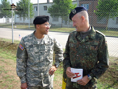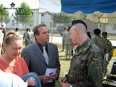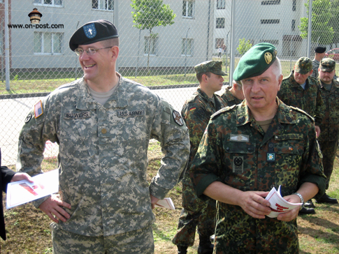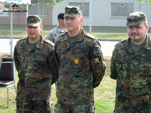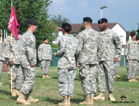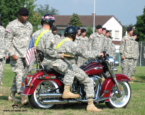 ![]() With a roar, 77th Maintenance company is officially inactivated By Matt Millham, Stars and Stripes European edition, Saturday, August 5, 2006 BABENHAUSEN, Germany — A 2006 Harley-Davidson Softail Deluxe whisked away the 77th Maintenance Company’s guidon Friday, moments after the small flag was rolled up for the last time. This quirky moment was the exclamation point at the end of the unit’s history. The guidon is bound for the National Archives in Washington. The inactivation of the 77th leaves this nearly deserted post without a single active unit. Though the order to call it quits wasn’t given until June, rumors of the inactivation had already spread through the ranks by April as the unit prepared to redeploy from its second Iraq tour. That forewarning hasn’t made it easier for Spc. Thomas Sawyer, 20, from Midland, Texas, to say goodbye to the unit. “I’m about to lose some really great friends that I made,” he said. The 77th is the only unit he has ever known, having been assigned to it straight out of training. A week after he signed in, he was told he was going to Baghdad. During that deployment, the 77th completed some 4,500 work orders — 2,500 more than the unit it replaced. Capt. Alex B. Hunt, a 29-year-old Houston native and commander of the unit, was quick to say that he himself never turned a wrench or filled out a requisition. The impressive record of the 77th was all the soldiers’ doing, he said. “I’ve never seen anyone accomplish as much as they did with such limited resources,” Hunt said. The unit earned a Meritorious Unit Citation for its first Iraq deployment. The citation was added to the guidon during the inactivation ceremony, just moments before the casing of the colors. “It’s sort of sad because we’ve been together for a whole year, and now there’s not going to be anyone in the 77th,” said Spc. Rachel Lewis, 25, from Mars Hill, N.C. She spent her year in Iraq fixing radios, and after the ceremony, was on her way to pick up a set of orders moving her, she hoped, to Hanau. “We made a good team together,” said company 1st Sgt. Vincent Jefferson, 43, from Houston. In his 21 years in the Army, Jefferson has never had to go through an inactivation. He said almost all of the unit’s equipment has been turned in, which means there’s little left to do except turn over the buildings and help move the soldiers out. “They’re like my kids,” Jefferson said. “I wish we were all going to the same unit together.” The inactivation might not be the last nail in the unit’s coffin. Inactivated units can be called back to service at any time. ![]() Michael Abrams / S&S Sgt. 1st Class Randy Neville carries the cased colors of the 77th Maintenance Company off the field on the back of a 2006 Harley-Davidson Softail Deluxe driven by Staff Sgt. William Cooley at the company’s inactivation ceremony in Babenhausen, Germany, on Friday. At center is 1st Sgt. Vincent Jefferson, who handed Neville the flag. ![]() Michael Abrams / S&S Company commander Capt. Alex B. Hunt, left, and 1st Sgt. Vincent Jefferson case the colors of the 77th Maintenance Company. ![]() Michael Abrams / S&S Led by company commander Capt. Alex B. Hunt, the 77th Maintenance Company parades onto the field for the last time as a unit. Carrying the unit colors is Spc. Joshua Proctor. Used with permission from Stars and Stripes. ©2006,2013 Stars and Stripes |